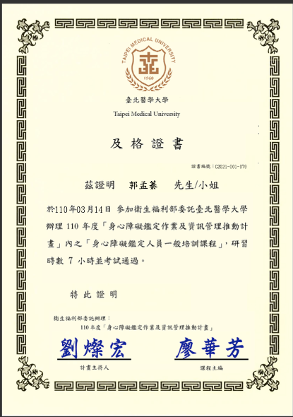 ◾ 身心障礙鑑定人員訓練暨人力資料庫與決策支援系統建置-身心障礙鑑定人員一 般培訓課程