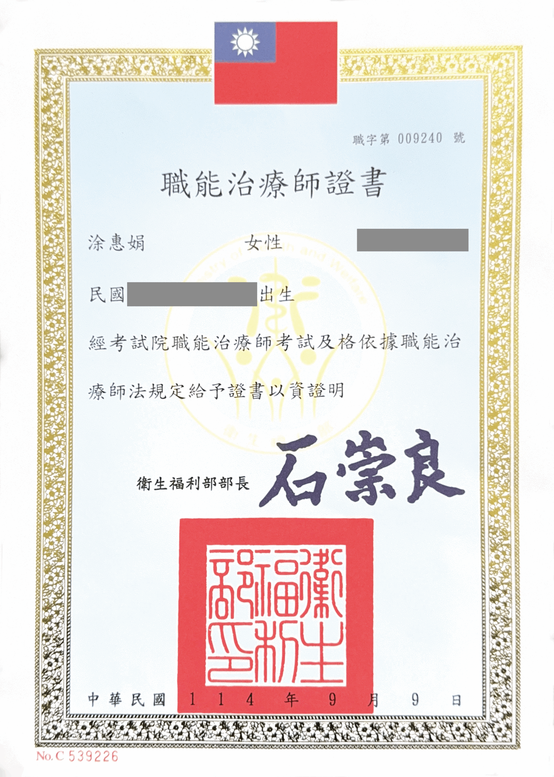 ◾ 國家高等考試職能治療師證書