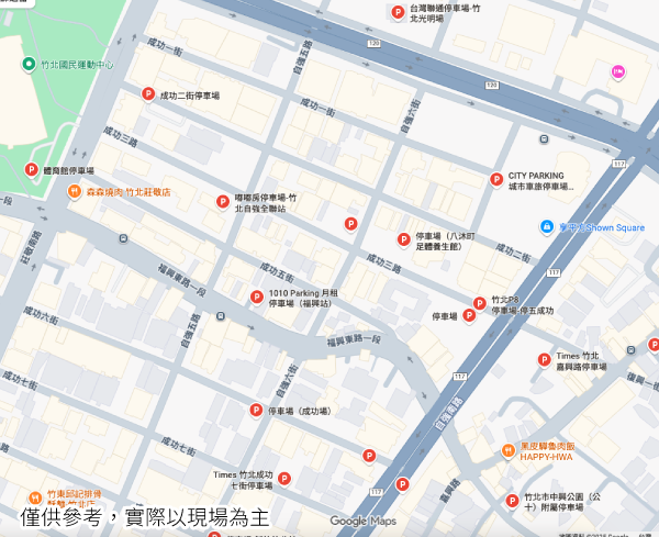 1.Times 竹北自強六街停車場2.嘟嘟房停車場-竹北自強全聯站3.1010 Parking 月租停車場(福興站)4.竹北P8停車場-停五成功5.CITY PARKING 城市車旅停車場 自強七街立體站 (龍享廣場)6.成功二街停車場周邊停車便捷,更多停車資訊