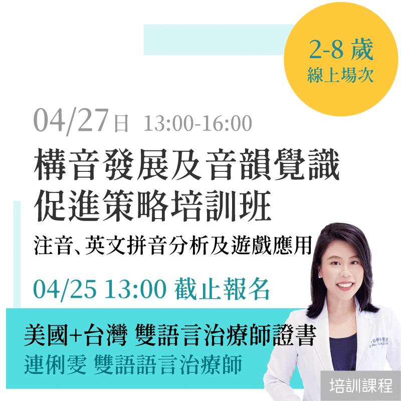 課程名稱:「線上場次」構音發展及音韻覺識促進策略培訓班—注音、英文拼音分析及遊戲應用